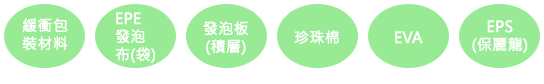 各種緩衝包裝材料、EPE發泡布(袋) 、發泡板(積層)、珍珠棉、EVA、EPS(保麗龍)等… 各種材料、包裝及設計製造。
